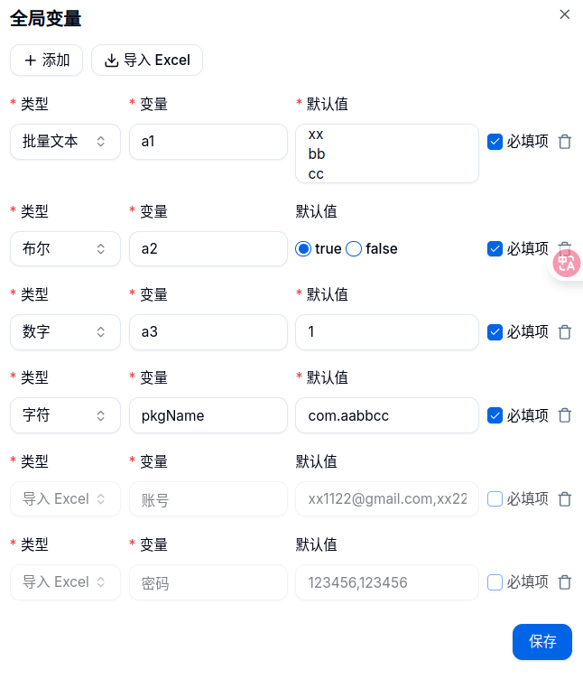 在云手机执行过程中,获取到的值,保存为变量,则为动态变量
