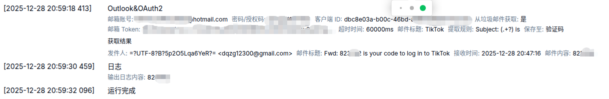 两种获取邮件方式,除了登陆相关参数不同,匹配选项基本相同,下面演示在获取邮件时直接匹配出验证码
