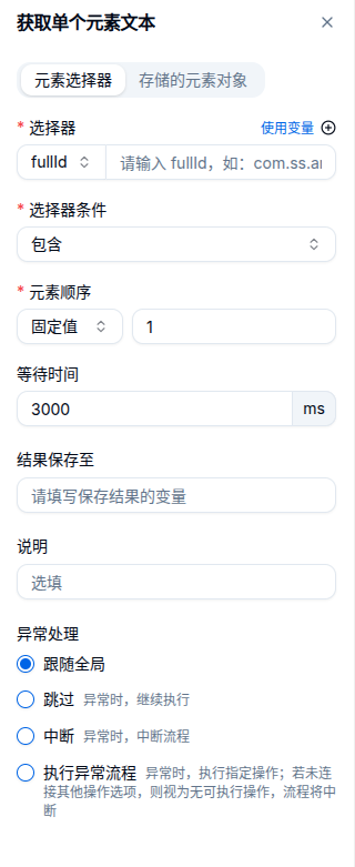 通过条件获取到指定元素,并将该元素的文本显示保存至变量