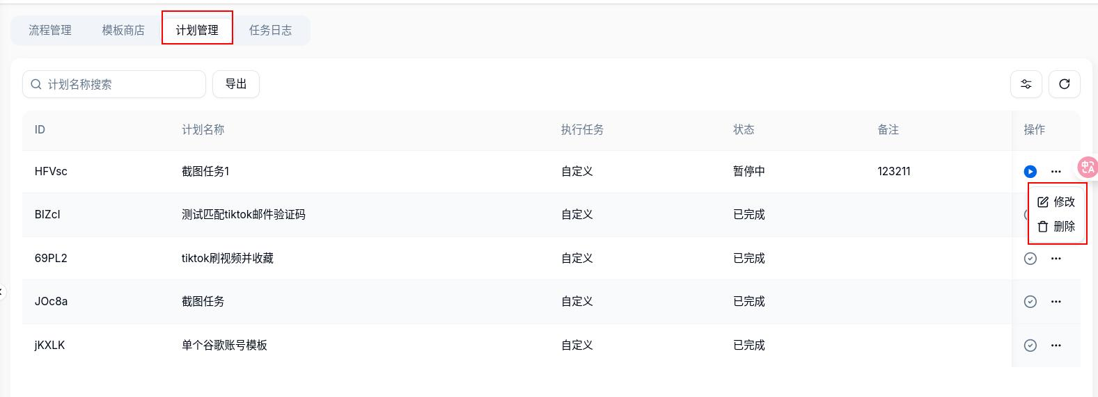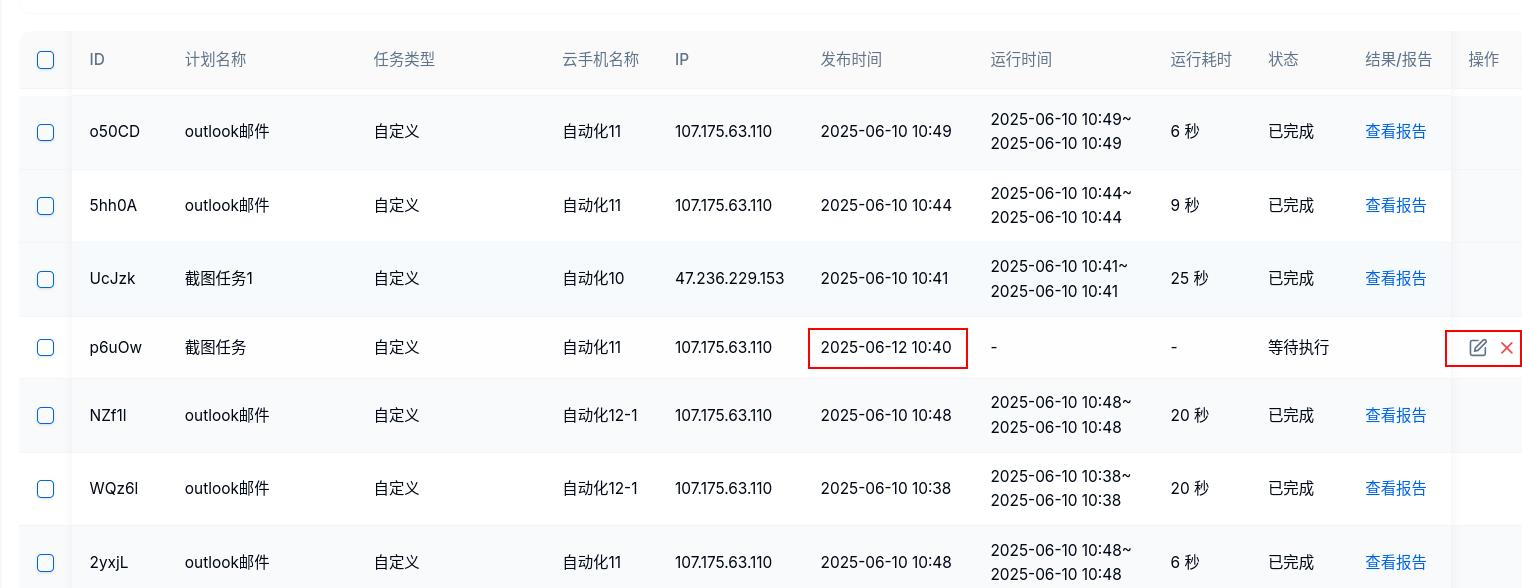 查看计划任务执行的结果,定时计划会直接保存在该列表中,等待时间到达后再执行,可以手动在该页面停止定时计划