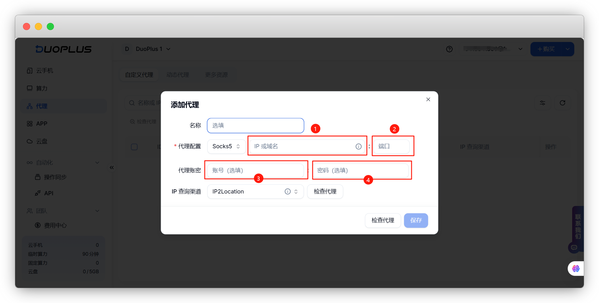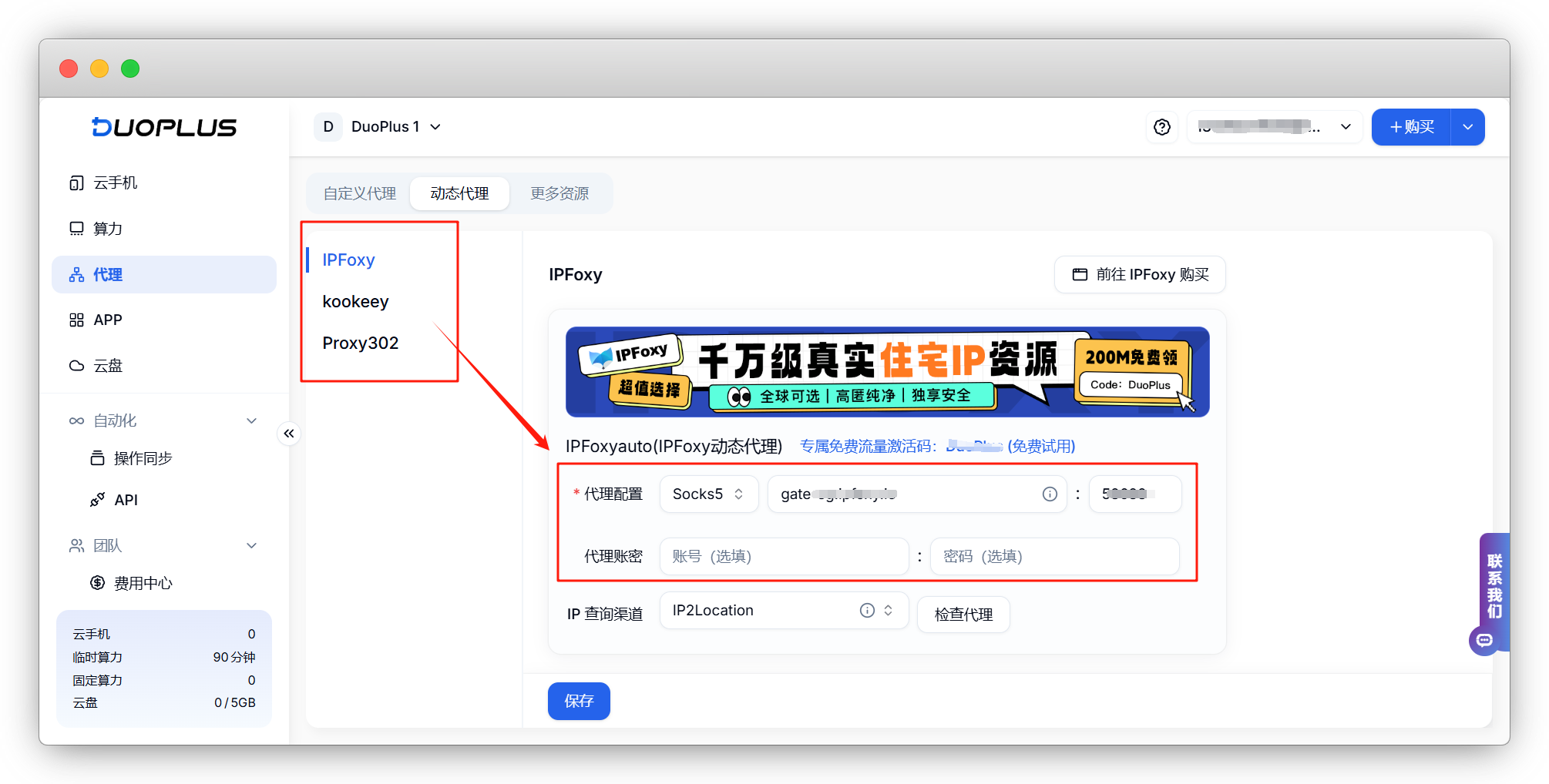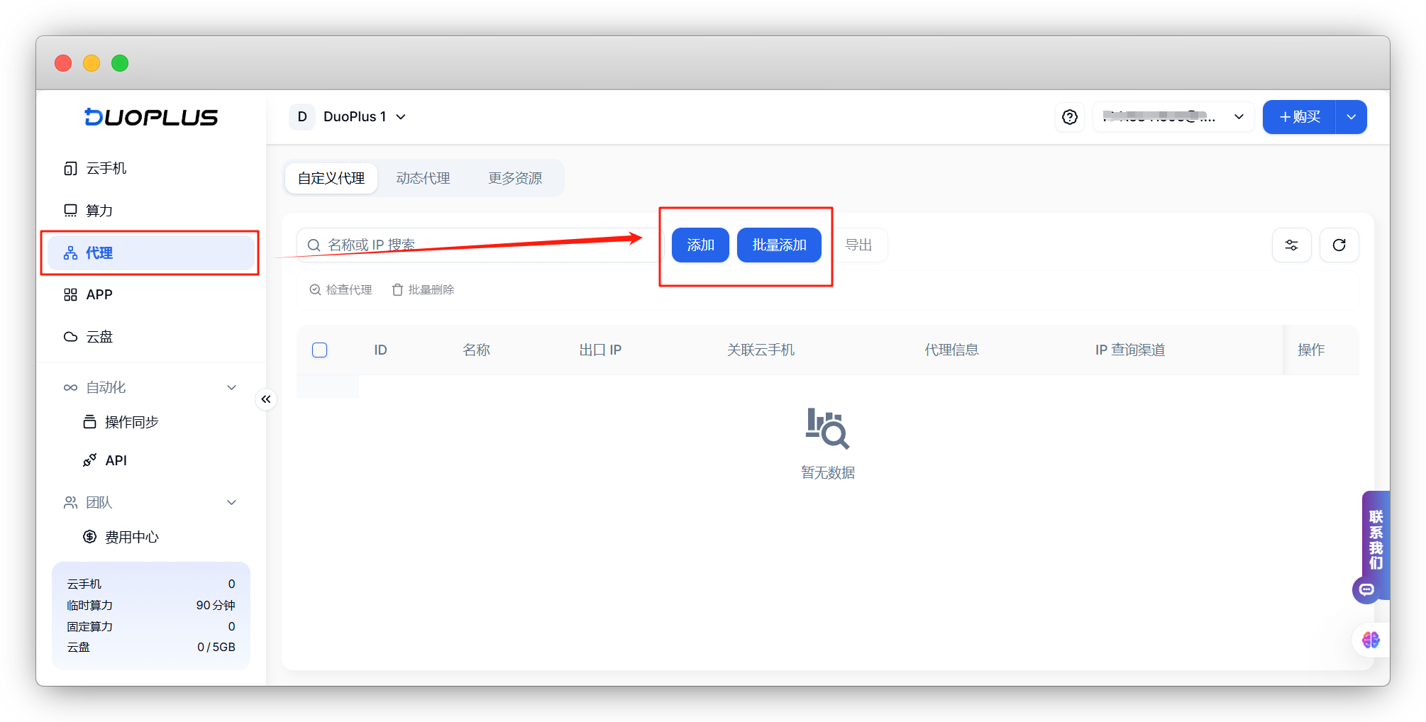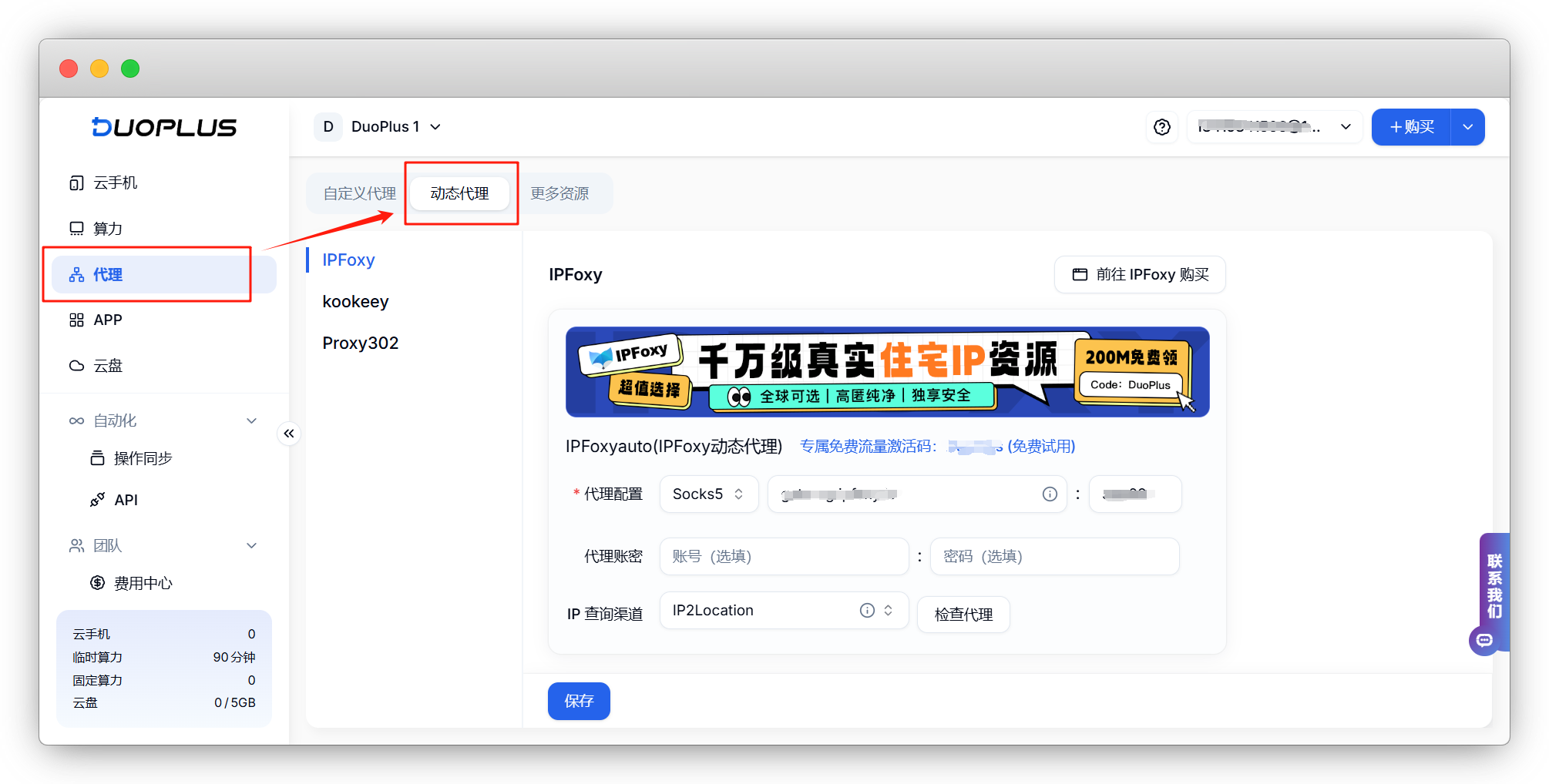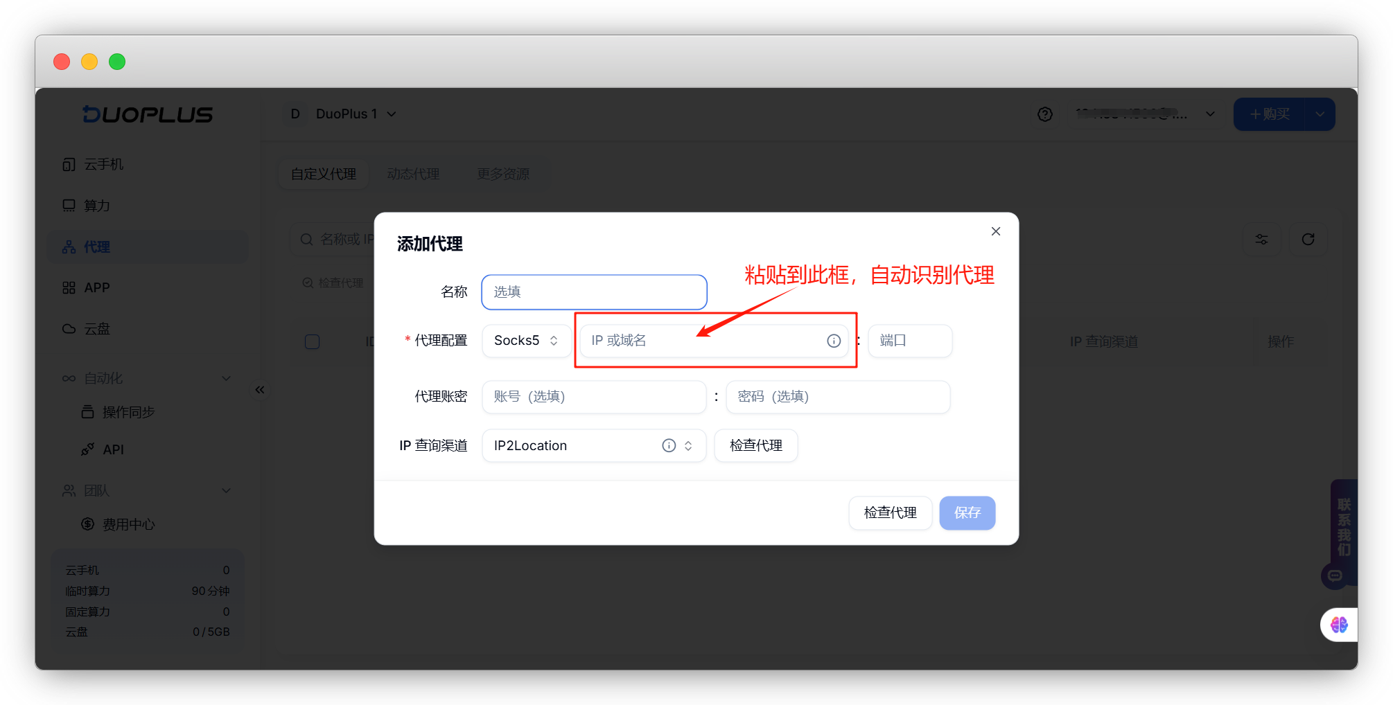 DuoPlus支持在后台直接配置动态代理,用户可在动态代理页面根据需求选择动态代理,或者将已有的动态代理一键配置添加