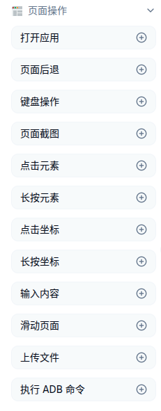 创建任务流程时,在左侧的工具栏目中,页面操作中是和界面交互的动作。选中具体的流程时,可以在右侧编辑该流程的参数