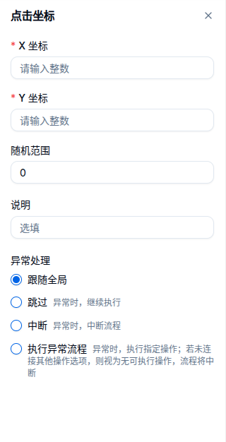 点击指定的坐标,随机范围则会在范围内生成随机坐标