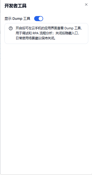 右下角的Dump工具的第一个图标会根据RPA模式设置的模式来切换对应的模式